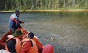Retkeen sisältyy Venekuljetus kala-apajalle, oppaan palvelut, kalastuslupa, kahvit ja